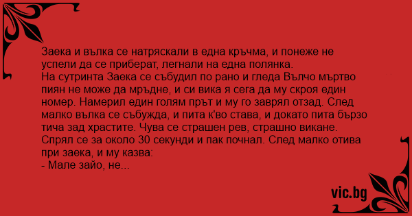 Заека и вълка се натряскали...