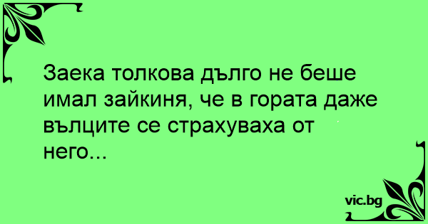 Заека толкова дълго не беше имал зайкиня, че в гората даже вълците се страхуваха от него...