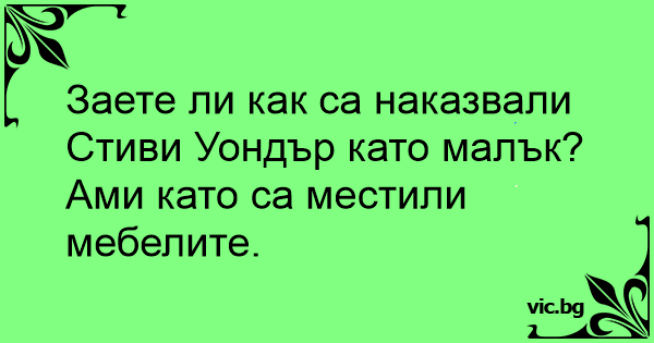 – Vad gör Stevie Wonders fru sedan dem bråkat? – Möblerar om!