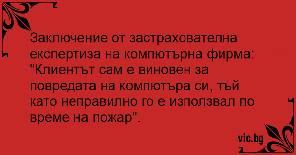 "Клиентът сам е виновен за повредата на компютъра си, тъй като неправилно го е използвал по време на пожар".