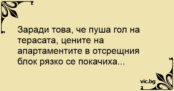 Заради това, че пуша гол на терасата, цените на апартаментите в отсрещния блок рязко се покачиха...