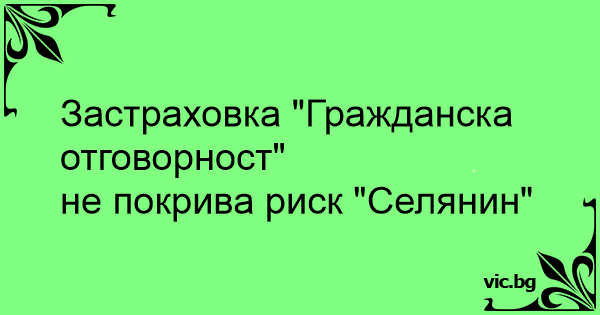 не покрива риск "Селянин"