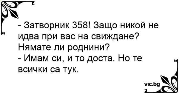 - Затворник 358! Защо никой не идва при вас на свиждане? Нямате ли роднини?