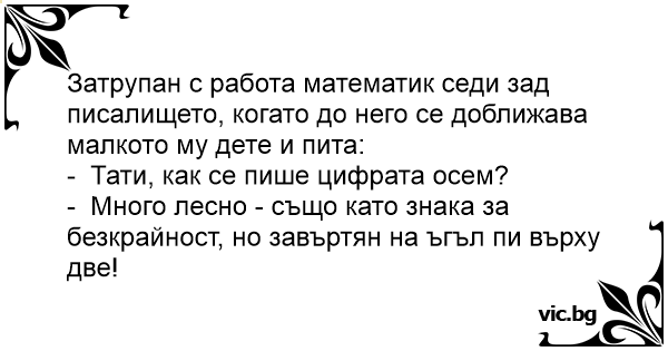 Затрупан с работа математик седи зад писалището, когато до него се доближава малкото му дете и пита: