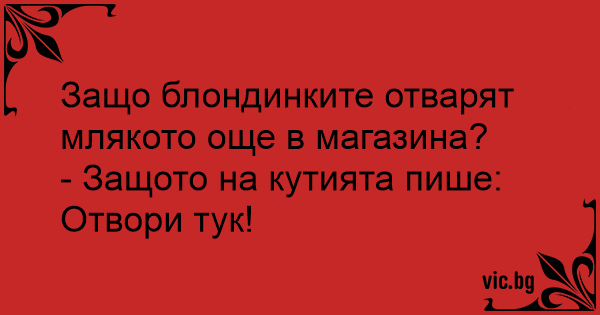 Kāpēc blondīne piena paku atver veikalā? Tāpēc ka uz tās rakstīts "atvērt šeit".