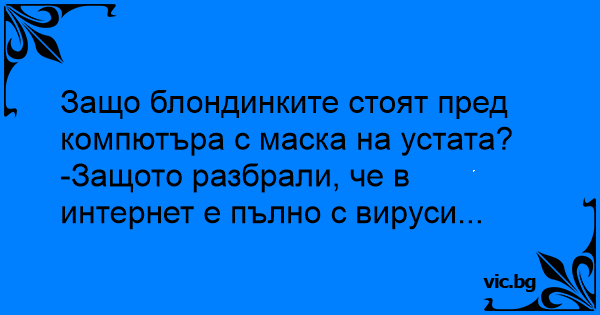 Защо блондинките стоят пред компютъра с маска на устата?