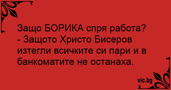 - Защото Христо Бисеров изтегли всичките си пари и в банкоматите не останаха.