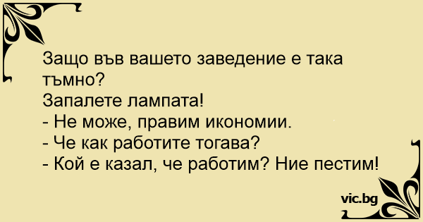 • Вицове от Facebook от нашата страница https://www.facebook.com/www.vic.bg