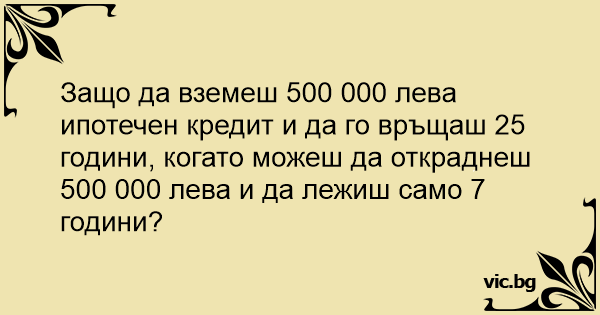 Защо да вземеш 500 000 лева ипотечен кредит и да го връщаш 25 години, когато можеш да откраднеш 500 000 лева и да лежиш само 7 години?