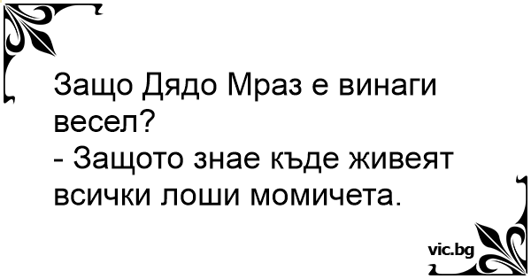 - De ce e Mos Craciun mereu fericit? - Pentru ca stie unde stau fetitele rele...