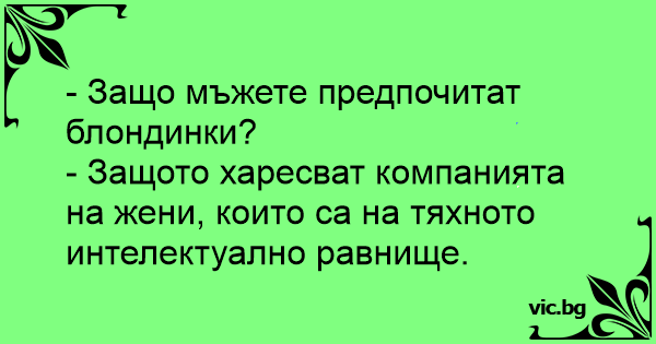- Защото харесват компанията на жени, които са на тяхното интелектуално равнище.