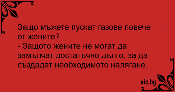 - Защото жените не могат да замълчат достатъчно дълго, за да създадат необходимото налягане.