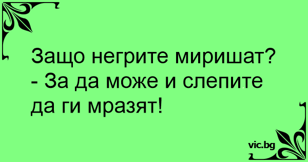 Hvorfor lugter alle negere ? - Det er sådan at de blinde også kan hade dem…