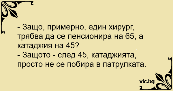- Защо, примерно, един хирург, трябва да се пенсионира на 65, а катаджия на 45?