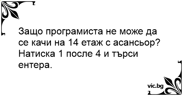 Защо програмиста не може да се качи на 14 етаж с асансьор?