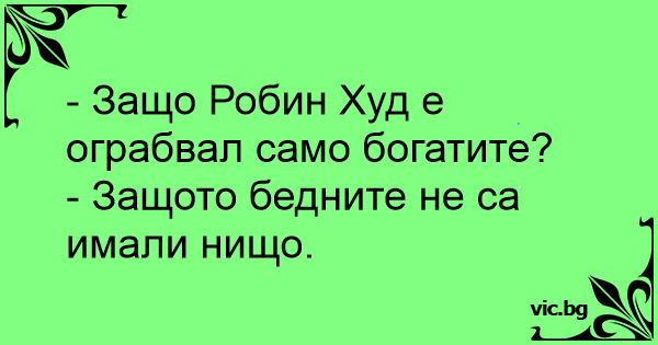 - Jaimito que hacia Robin Hood? - Robarle a los ricos. - Por que? - Por que a los pobres no les podia robar nada.