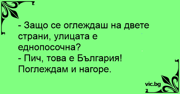 - Защо се оглеждаш на двете страни, улицата е еднопосочна?