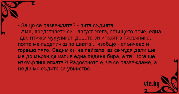 - Защо се развеждате? - пита съдията.