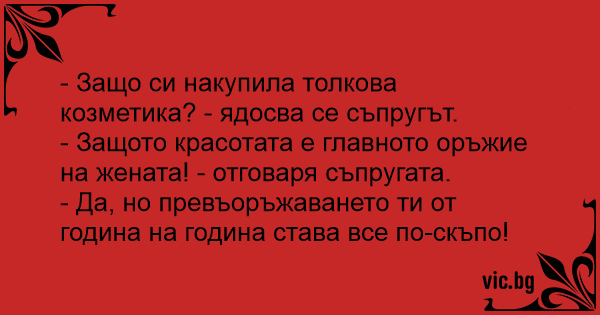 - Защото красотата е главното оръжие на жената! - отговаря съпругата.