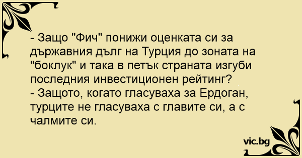 - Защо "Фич" понижи оценката си за държавния дълг на Турция до зоната на "боклук" и така в петък страната изгуби последния инвестиционен рейтинг?