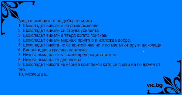 9. Шоколадът никога не избива комплекси като се прави на по важен от теб.