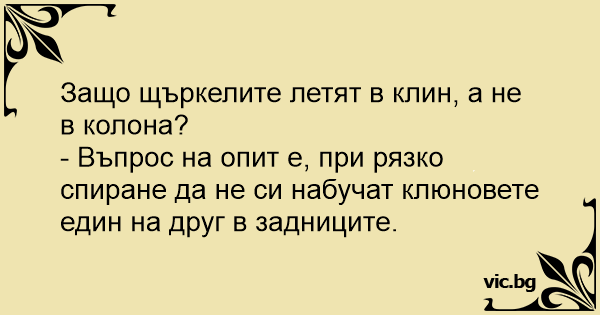 • Вицове от Facebook от нашата страница https://www.facebook.com/www.vic.bg