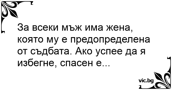 За всеки мъж има жена, която му е предопределена от съдбата. Ако успее да я избегне, спасен е...