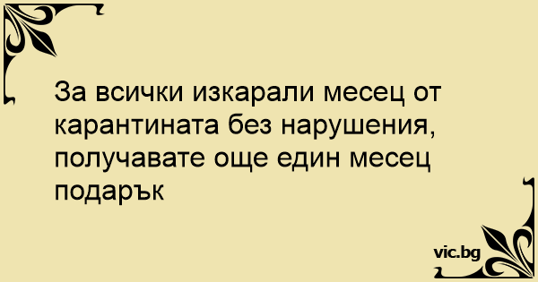 За всички изкарали месец от карантината без нарушения, получавате още един месец подарък
