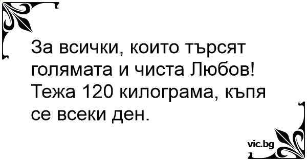 Тежа 120 килограма, къпя се всеки ден.