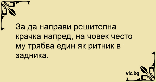 За да направи решителна крачка напред, на човек често му трябва един як ритник в задника.