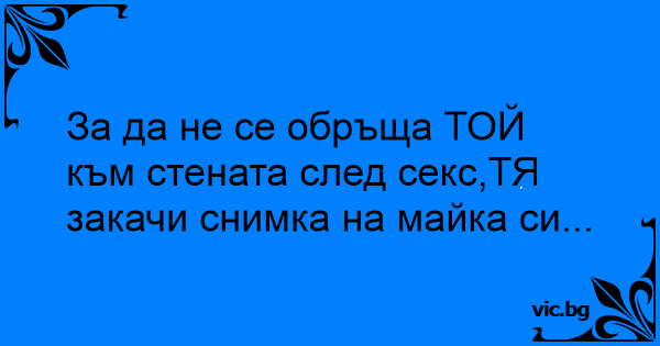 За да не се обръща ТОЙ към стената след cekc,ТЯ закачи снимка на майка си...