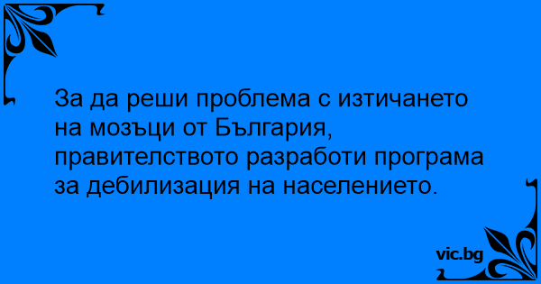 За да реши проблема с изтичането на мозъци от България, правителството разработи програма за дебилизация на населението.