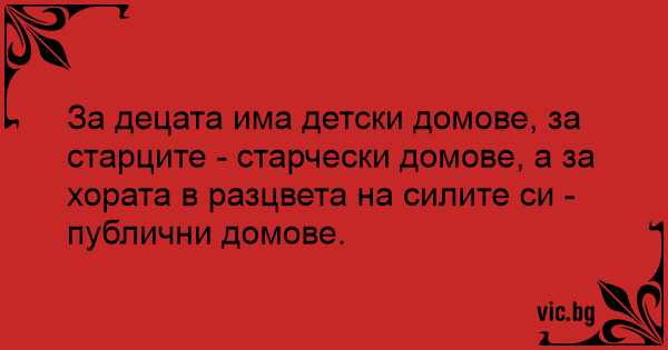 За децата има детски домове, за старците - старчески домове, а за хората в разцвета на силите си - публични домове.