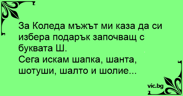 За Коледа мъжът ми каза да си избера подарък започващ с буквата Ш.