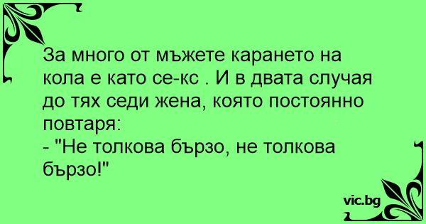 За много от мъжете карането на кола е като cekc . И в двата случая до тях седи жена, която постоянно повтаря: