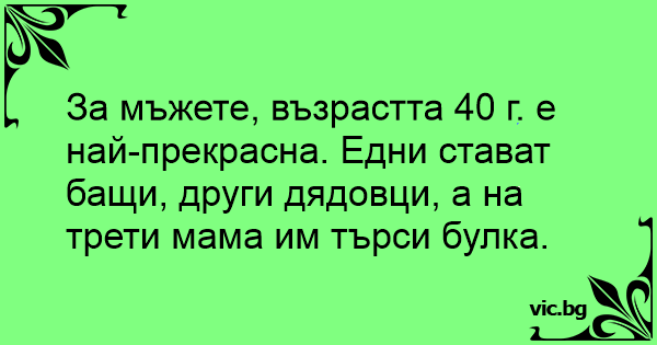 За мъжете, възрастта 40 г. е най-прекрасна. Едни стават бащи, други дядовци, а на трети мама им търси булка.