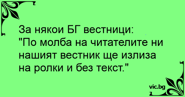 "По молба на читателите ни нашият вестник ще излиза на ролки и без текст."