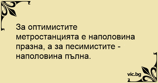 За оптимистите метростанцията е наполовина празна, а за песимистите - наполовина пълна.