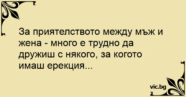 За приятелството между мъж и жена - много е трудно да дружиш с някого, за когото имаш ерекция...
