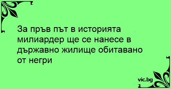 За пръв път в историята милиардер ще се нанесе в държавно жилище обитавано от негри