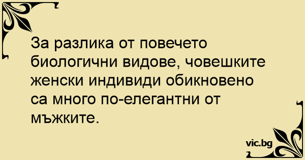 За разлика от повечето биологични видове, човешките женски индивиди обикновено са много по-елегантни от мъжките.