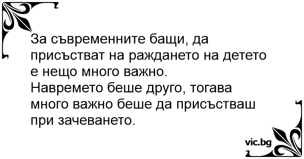 Навремето беше друго, тогава много важно беше да присъстваш при зачеването.