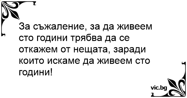 За съжаление, за да живеем сто години трябва да се откажем от нещата, заради които искаме да живеем сто години!
