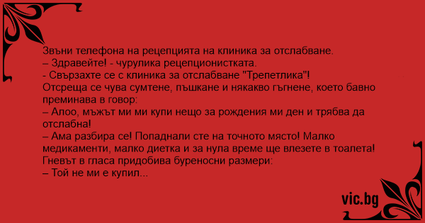 – Алоо, мъжът ми ми купи нещо за рождения ми ден и трябва да отслабна!