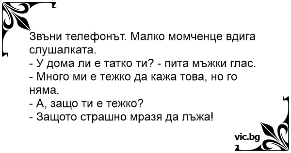 • Вицове от Facebook от нашата страница https://www.facebook.com/www.vic.bg