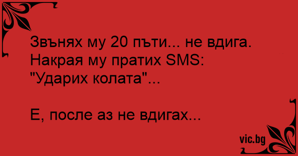 Звънях му 20 пъти... не вдига. Накрая му пратих SMS: