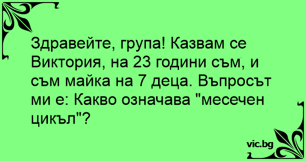 Здравейте, група! Казвам се Виктория, на 23 години съм, и съм майка на 7 деца. Въпросът ми е: Какво означава "месечен цикъл"?