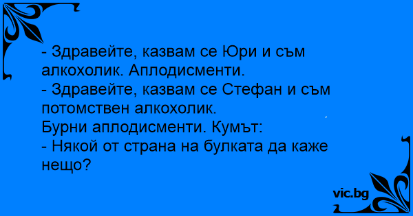 - Здравейте, казвам се Юри и съм алкохолик. Аплодисменти.