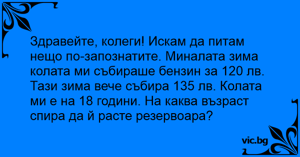 Тази зима вече събира 135 лв. Колата ми е на 18 години. На каква възраст спира да й расте резервоара?
