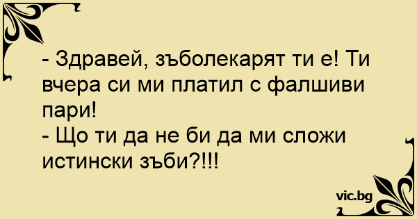 - Здравей, зъболекарят ти е! Ти вчера си ми платил с фалшиви пари!
